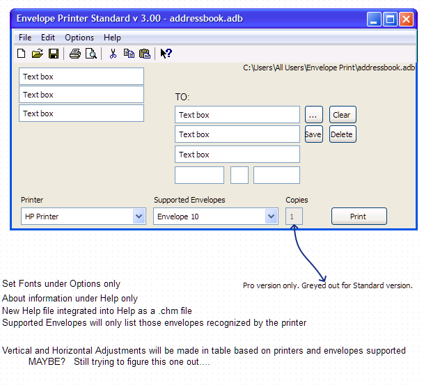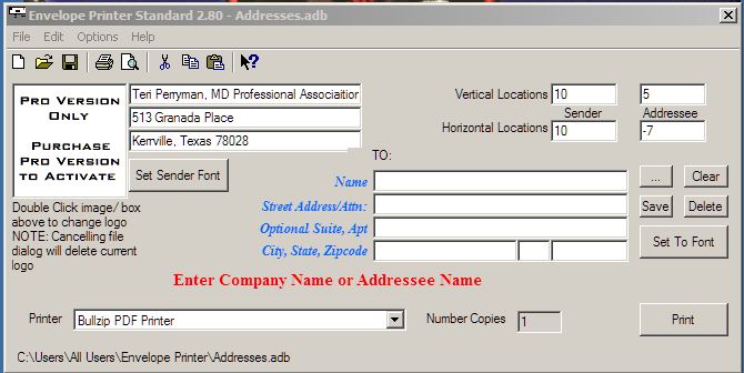 Overall, this version corrects problems with some printers, corrects blank records from being added to the address file, allows for printing Return Address only envelops,  provides a streamlined multiple copy print function, does away with the number of copies to print pop-up in the Pro version, allows users of the Pro version to add a 250 x 250 pixel logo/picture to the left of the Return address.